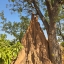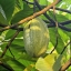 Unripe cacao pod growing on a Theobroma cacao tree, Ghana 2026